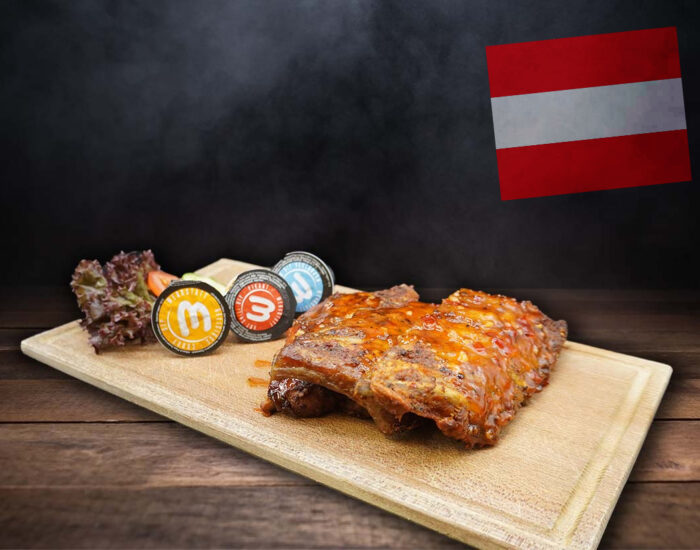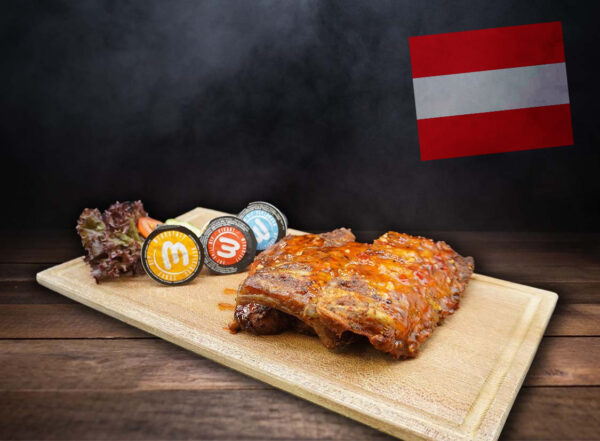 saftige, herzhaft marinierte Ribs mit verschiedenen Dips