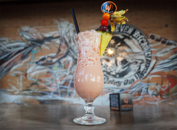 Ananassaft, Orangensaft, Erdbeermark, Sahne, Cocossirup