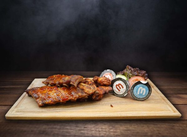 saftige Ribs an hausgemachter Honigmarinade mit verschiedenen Dips